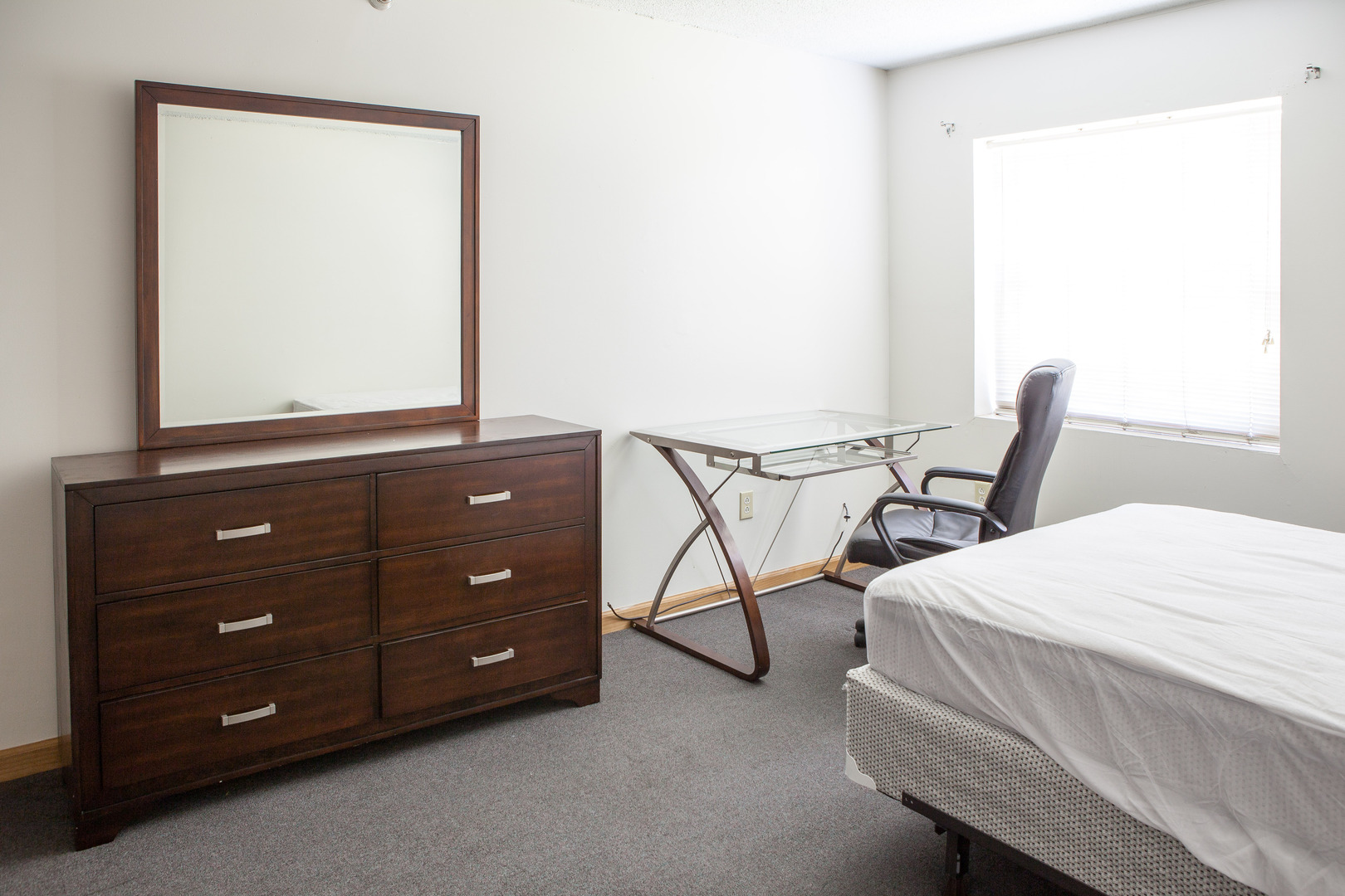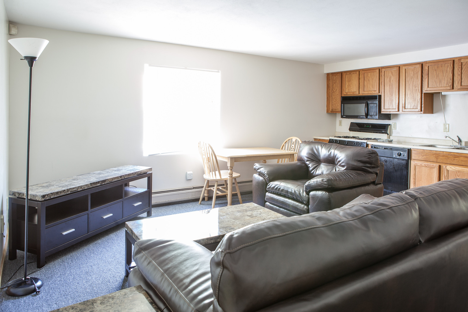 Nice, new apartment, wall to wall carpeting, modern kitchen with microwave, dishwasher, garbage disposal, blinds, 1 and a half bathrooms with ceramic tiles, alarm system, sprinkler system. Off-street parking for a fee. Coin-op laundry.