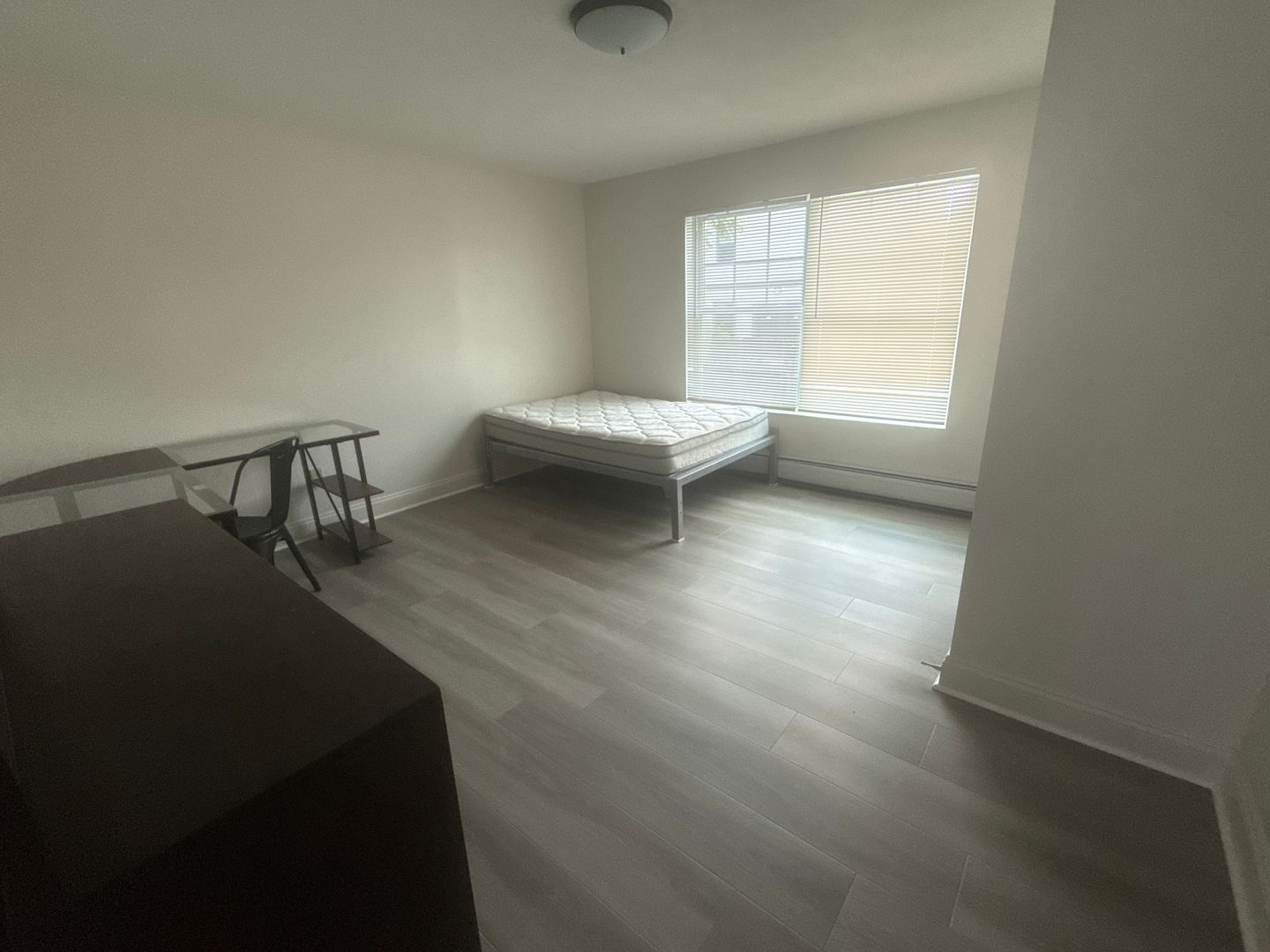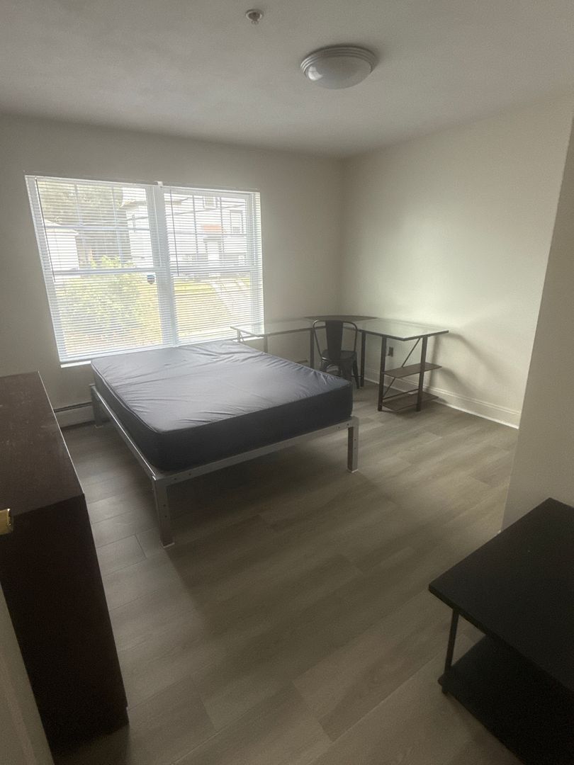 Apartment is furnished with new furniture as well! Bedrooms comes with a full size bed, desk with chair and dresser. Leather couch, coffee table and TV stand provided in addition to a table and chairs for dining.