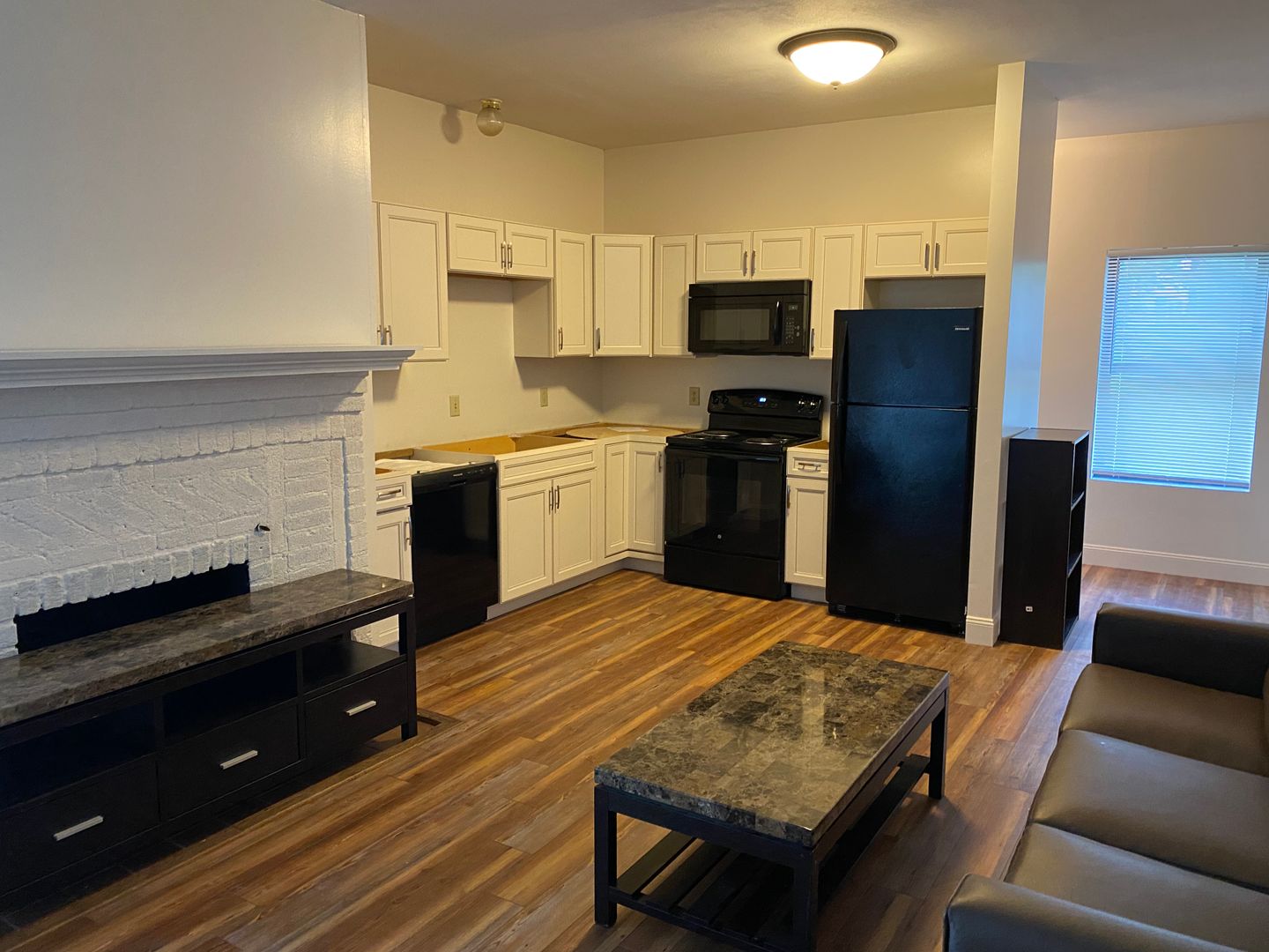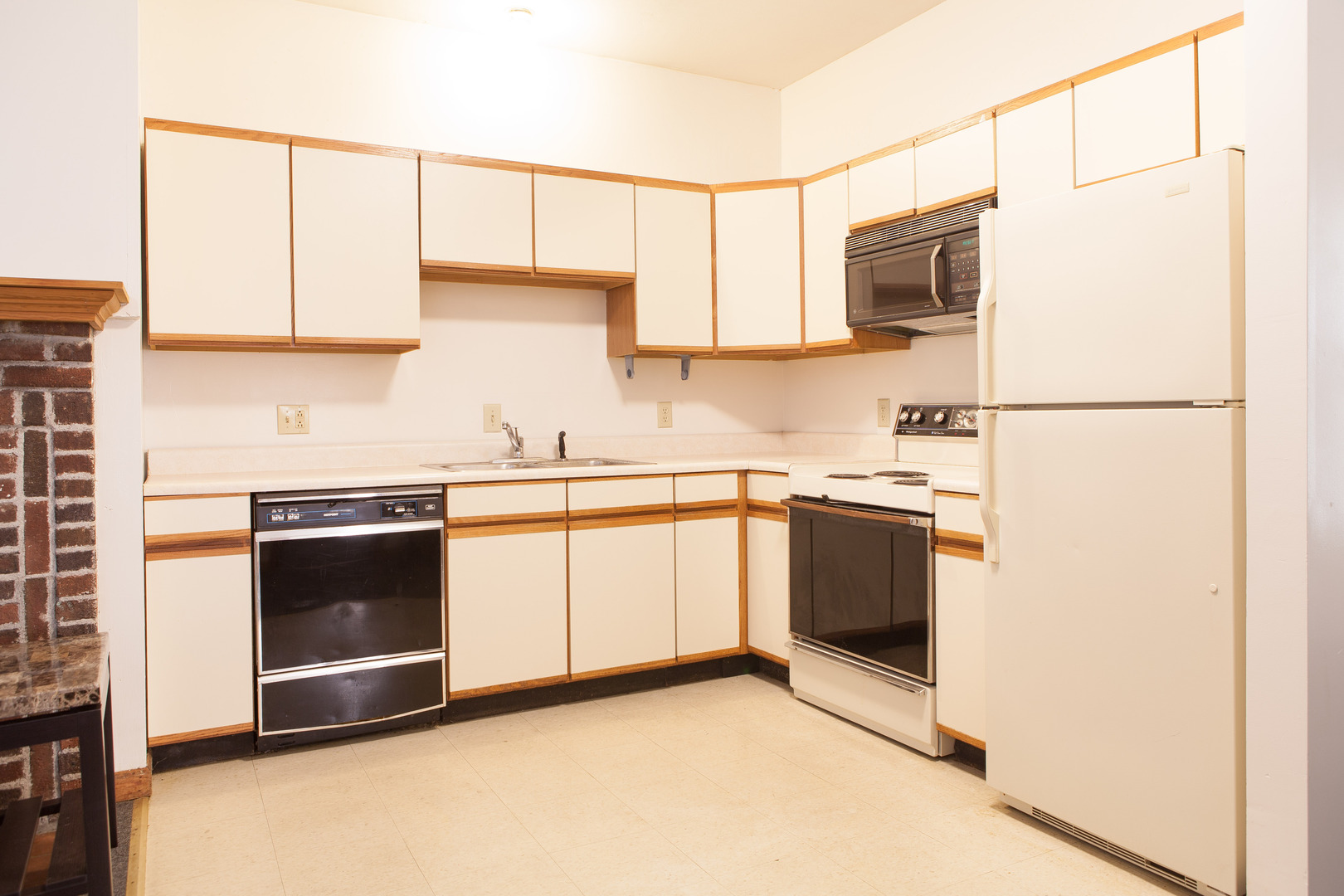 Apartment features: Decorative Fireplace with Mantle, Balcony off the Living Room, Wall to wall carpeting, Zone heating, Alarm system available. Kitchen has full size refrigerator, electric stove, dishwasher, garbage disposal, microwave. Off-street parking available. Coin-op laundry. Apartment comes fully furnished. Each bedroom comes with a full size bed, desk with chair, and dresser. Living & Dining room furniture also provided.