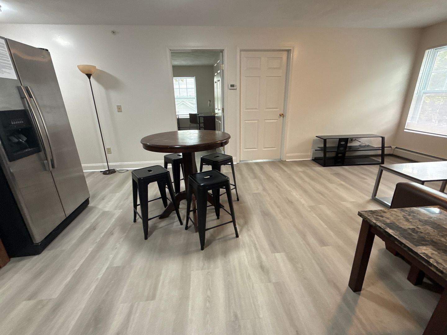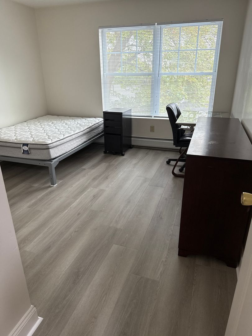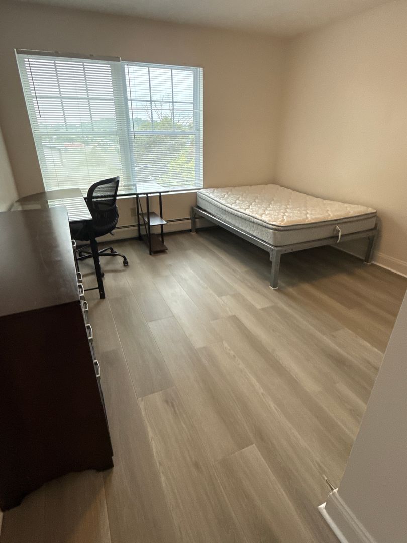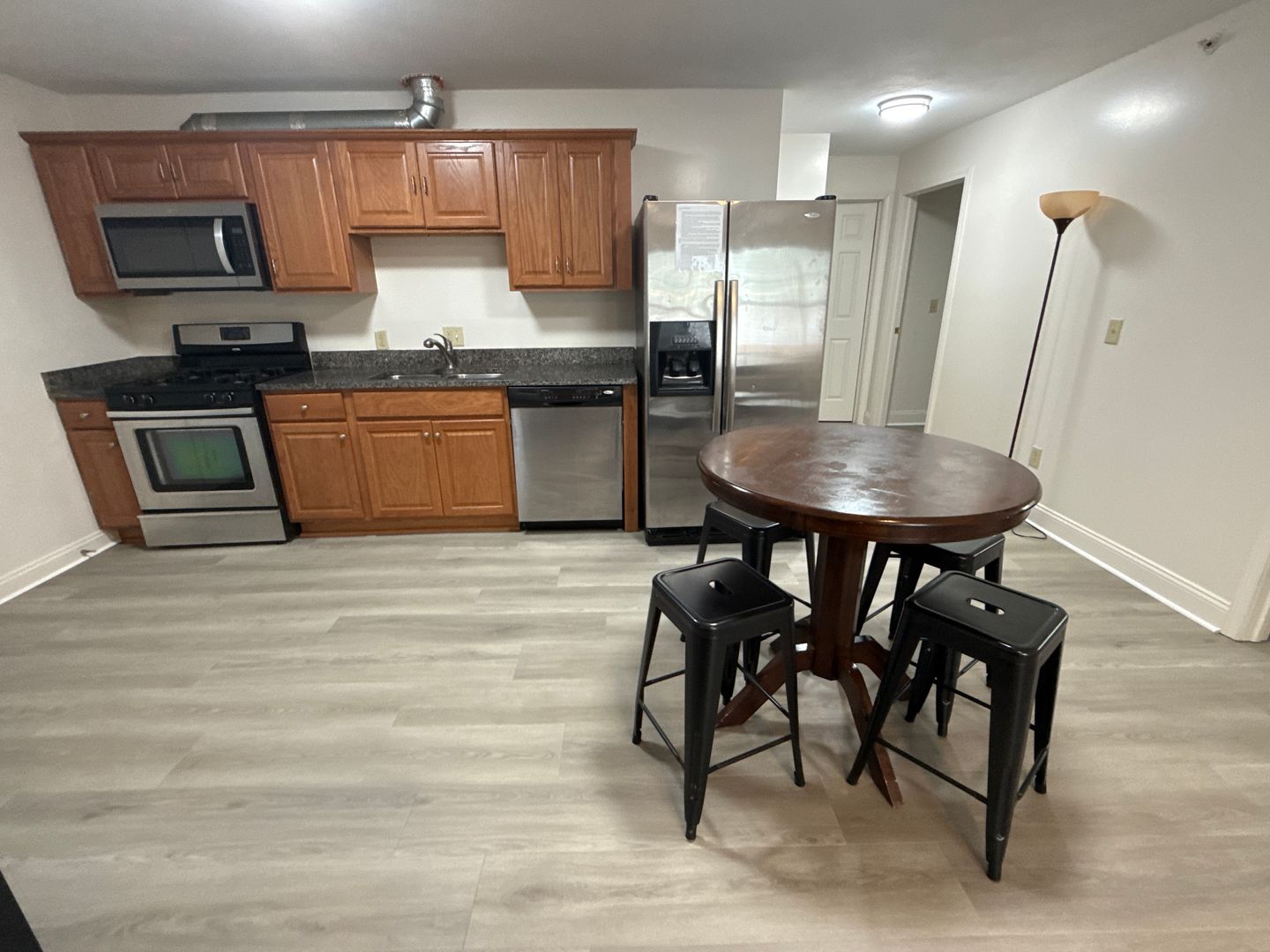 Apartment is furnished with new furniture as well! Bedrooms comes with a full size bed, desk with chair and dresser. Leather couch, coffee table and TV stand provided in addition to a table and chairs for dining.