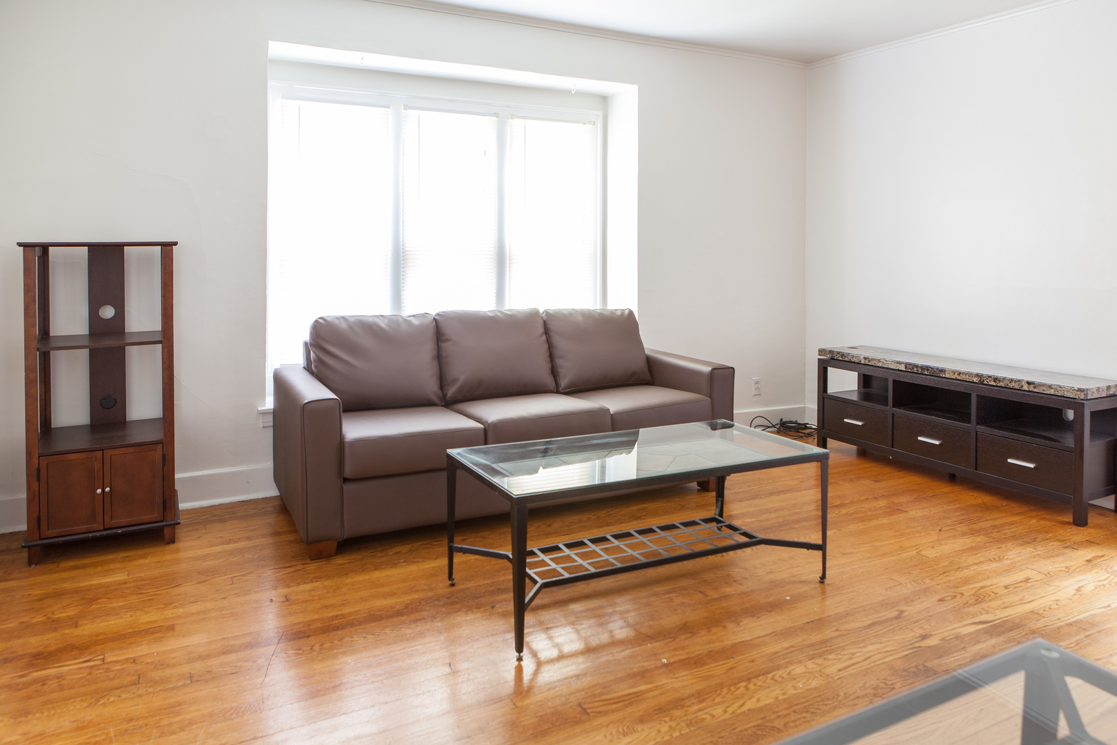 One of my favorite apartments! This apartment is light, bright and airy. The hardwood floors help keep everything looking clean while the french doors between bedroom and living room offer you the ability to keep areas hidden. Apartment comes fully furnished with bed, desk & chair and dresser. Living and dining furniture is also included.