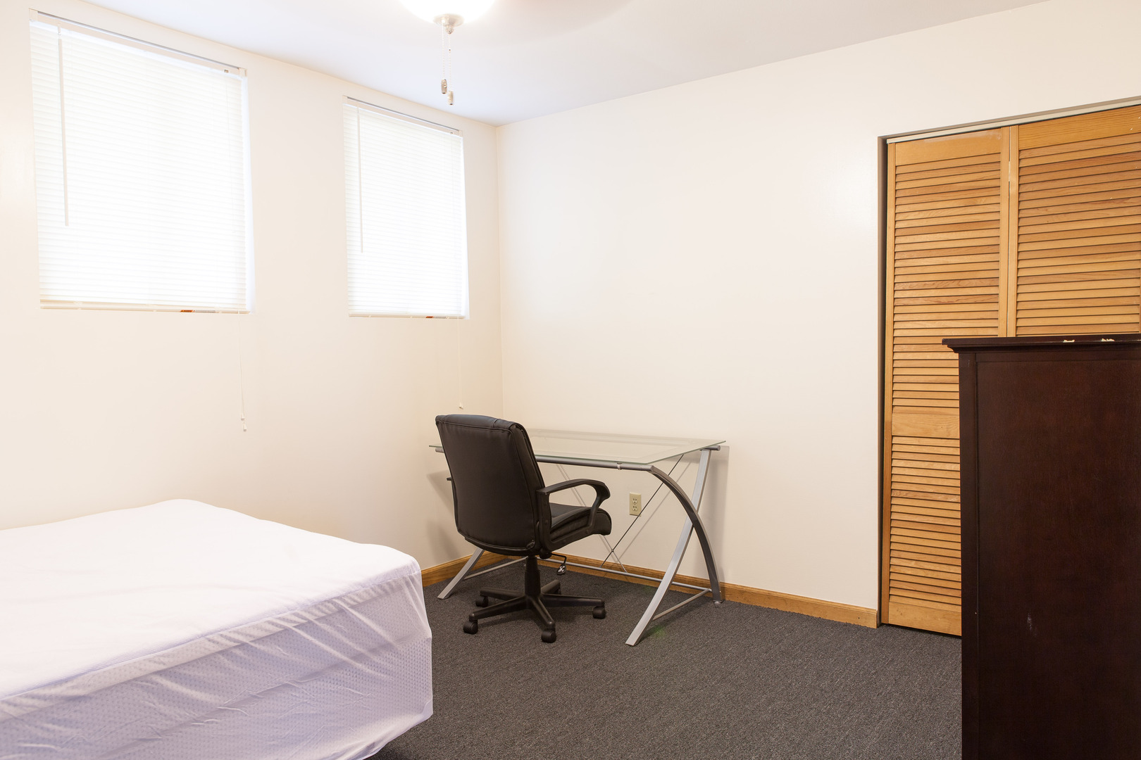 This garden level apartment is a quick walk to campus. Perfectly sized for two people. Apartment has wall to wall carpeting and zone heating. Kitchen has dishwasher, microwave, garbage disposal. Off-street parking is available and coin-op laundry room in the building. Apartment comes furnished. Each bedroom comes with a full size bed, desk with chair, and dresser. Living & Dining room furniture also provided.
