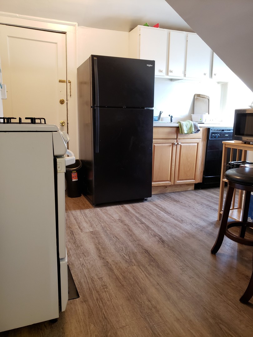 You guys need to check this apartment out! Over Spring break the living and kitchen flooring got an attractive (not to mention low maintenance and easy to clean) over haul! The new LVT flooring makes it look sharp.